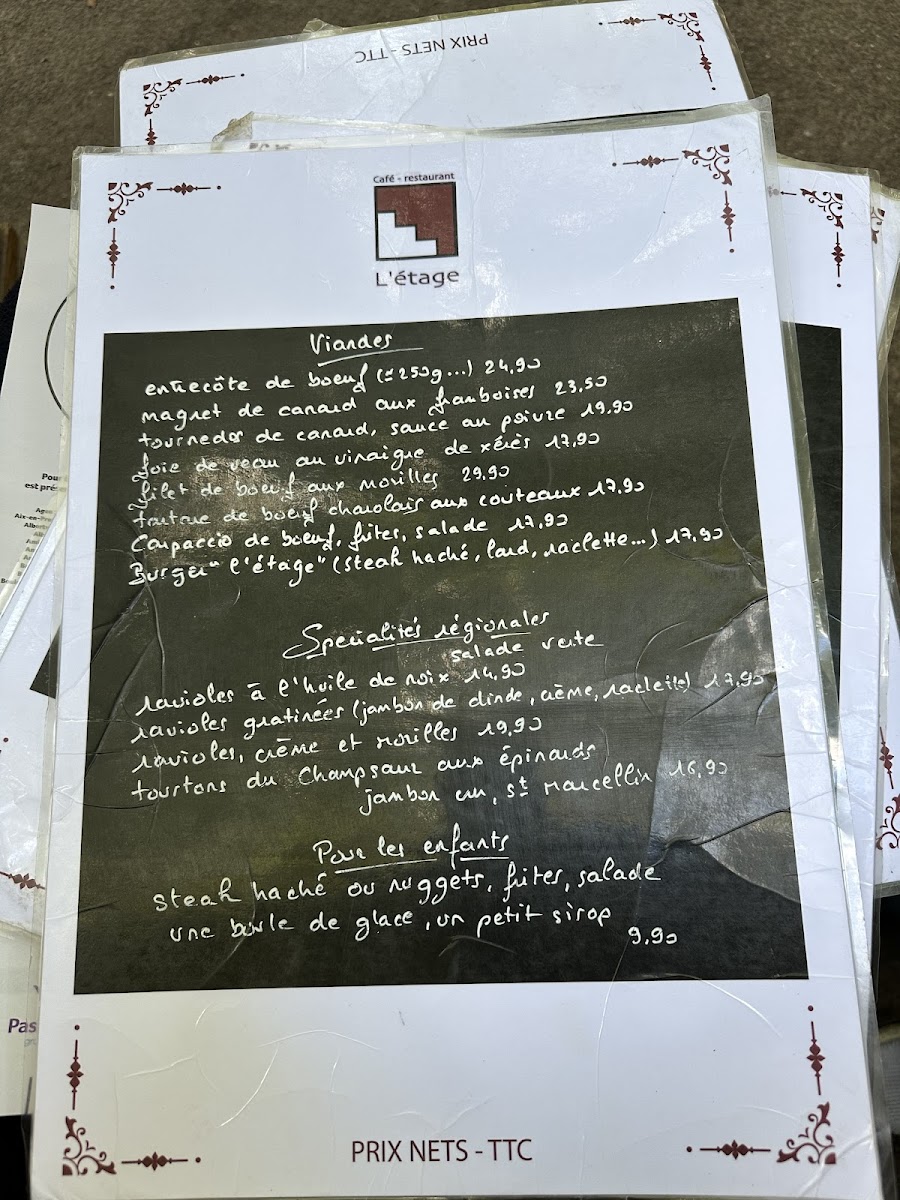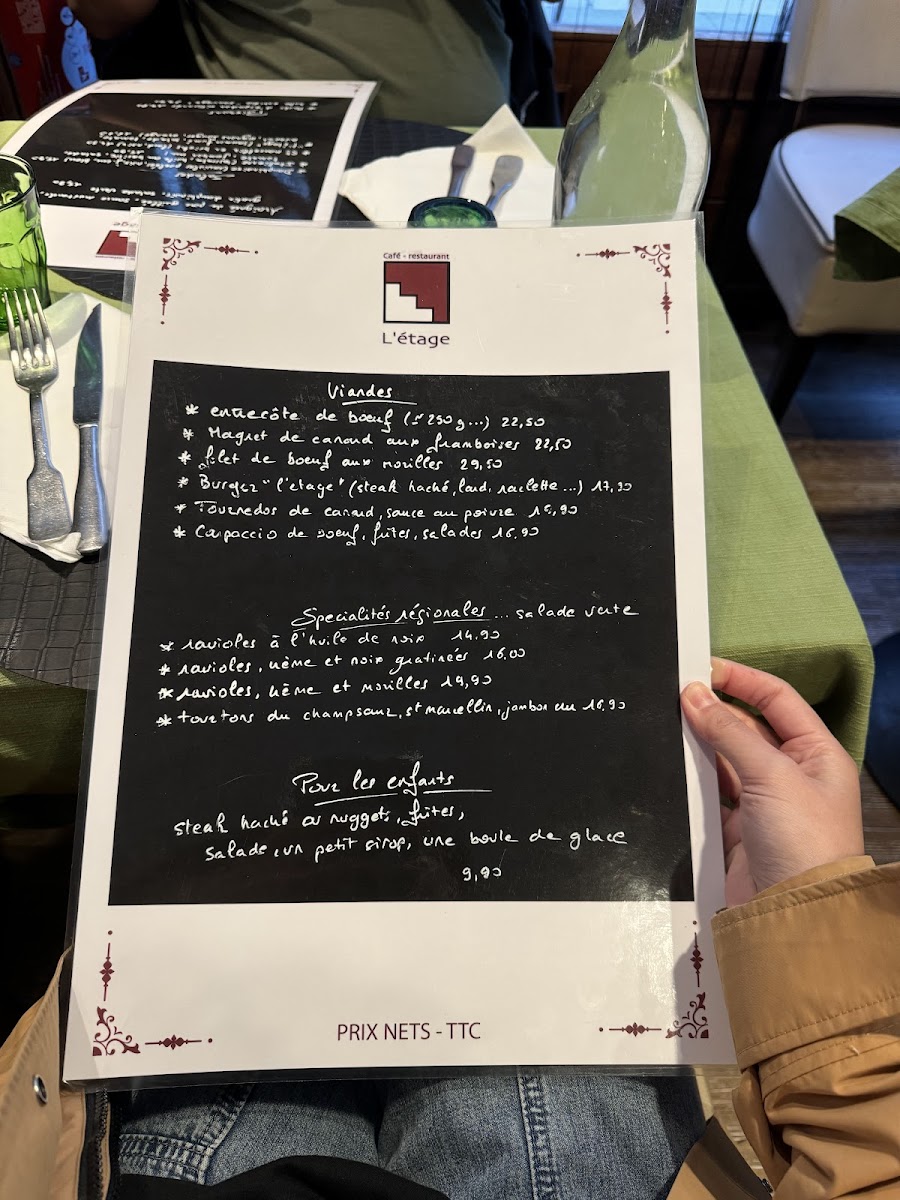 Café Restaurant L'etage offers a delightful blend of traditional French cuisine with a modern twist, making it a must-visit spot in Grenoble. The menu is a carefully curated selection of hearty dishes, each prepared with fresh, high-quality ingredients. Among the highlights, the Magret de Canard stands out as a signature dish, perfectly cooked with a rich, savory flavor that is complemented by its tender texture. Another must-try is the Ravioles Gratiné Crème de Noix, which features delicate ravioli with a creamy walnut sauce, offering a unique balance of earthy and rich flavors. Both dishes showcase the restaurant's commitment to French culinary excellence. Whether you are looking for something classic or adventurous, Café Restaurant L'etage's menu ensures a memorable dining experience, with each plate crafted to satisfy the palate and provide a true taste of the region.